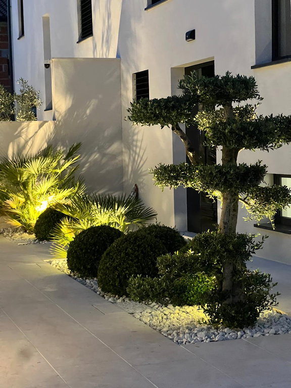 Skrbno urejena okolica ponuja diskretno preživljanje časa in sprostitev na prostem z več izhodi, ki lepo povezujejo notranjost vile z vrtom, kjer si lahko vsak poišče svoj kotiček miru. Velikost parcele omogoča kupcu dodatno postavitev bazena v lastni režiji.